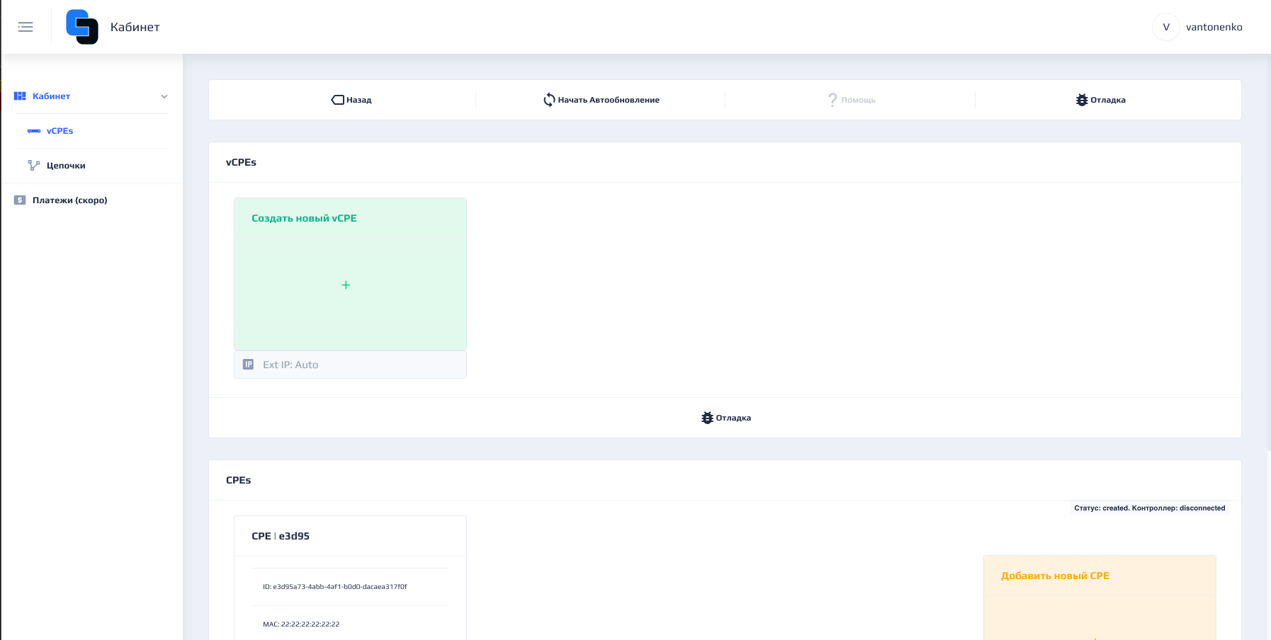 создание и удаление, мониторинг состояния доступных сервисов vCPE,